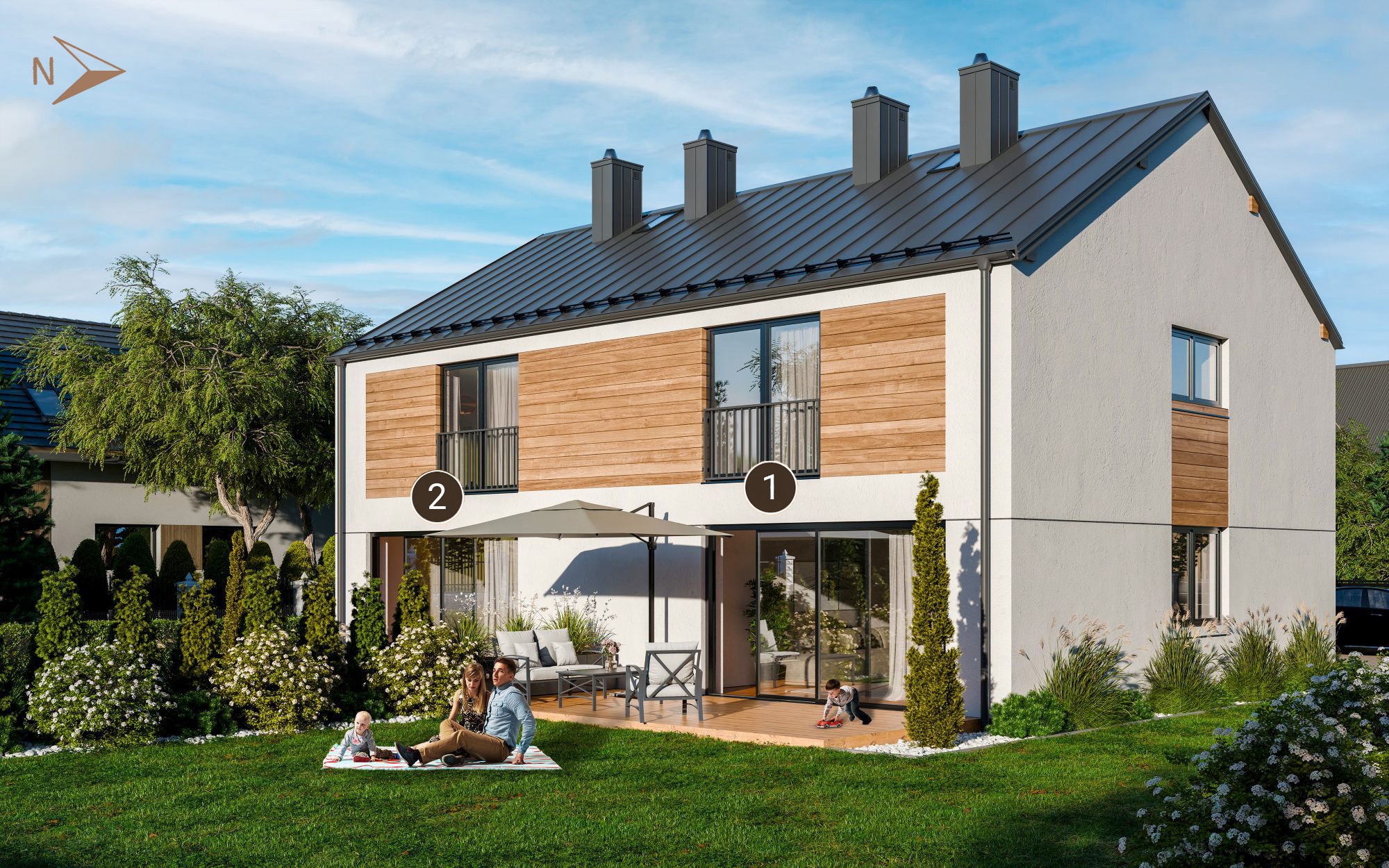 Wybierz parter z ogródkiem i tarasem, pozwalającym na relaks pod gołym niebem albo piętro z ogródkiem i dużym balkonem, idealnym na poranną kawę.